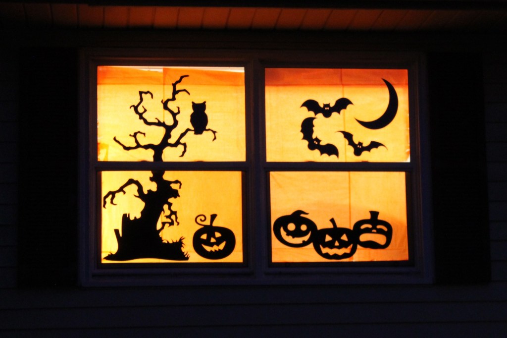 Gently we’d pull out images of smiling pumpkins, black cats, a silhouetted witch, skeletons and spider webs all printed onto pre-cut card stock. Over time their colors faded and their edges frayed, but we’d greet and care for them like friends we only got to see once a year. Carefully they’d be scotch-taped to the window until the last piece was hung, the banner reading: HAPPY HALLOWEEN!