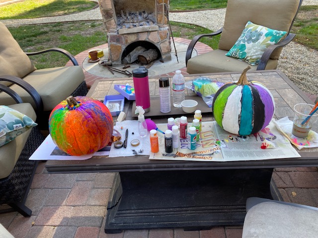 For three years running, I have chosen two pumpkins just before Halloween for make-overs. The first two years, I flipped through magazines, and browsed online for inspiration, then mapped out how I would decorate them. Feeling more confident this time around, I just went with the flow to see what would happen. After fifteen hours sitting in our backyard, painting, bedazzling, and marking them, I have two pumpkins I adore. With the words Love, Peace and Sunshine handwritten on it, my hippie one has a warm and cozy vibe. My Zentangle creation has repeating patterns and ribs of different colors, giving it a more composed look. Each making me feel equally happy.