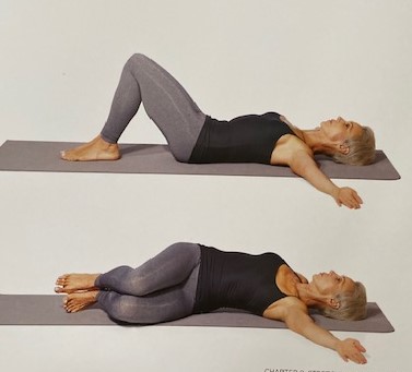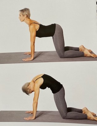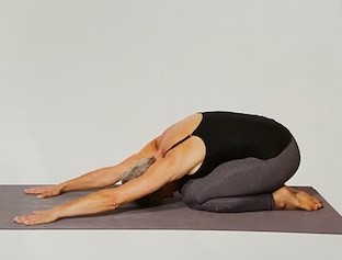 I will begin with the Cat-Camel stretch which warms the entire spine, promotes circulation, and relieves stiff back muscles. To open up my chest and breathing, I will then do a Standing Pec stretch. Next up, or should I say down is the Double Knee to Chest stretch. While lying face up, this one massages the lower back and helps with tightness in the hips. Lower Trunk Rotation will follow. Lying face up with knees bent, I’ll rotate my body side to side. This stretch loosens muscles in the lower back and hips, as well. And I’ll end my session with Child’s Pose. This has always been one of my favorite yoga poses as it allows me to reach my arms overhead, drop my head to the floor, and invites my hips and heels to sit back. Ah…I’m relaxed just thinking about this routine!