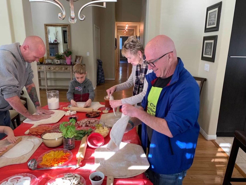 Scenario Two: A black checkered tablecloth covers our dining room table and down its center are bowls, small plates and ramekins filled with diced onions, sliced peppers, mushrooms, olives, pepperoni, bacon, prosciutto, shredded cheeses, and tomato sauce. Around the edges of this surface lay floured paddles with a ball of dough on top of each, ready for guests to make their own creations, then be baked in our outdoor pizza oven. After dining at the bar, the glow from our fireplace beckons us to come over to sit, kick back, and share life stories as the autumn sun sets on the horizon.