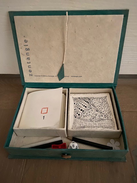 “Dusted off my Zentangle kit that I bought way back in 2011!! My first tangles were in the box…so neat to see them!”