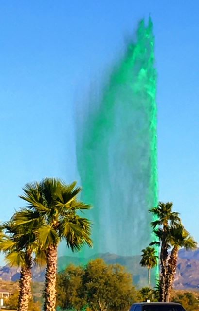 “The fountain in town turned green at noon! Saw it from our house… how fun!”