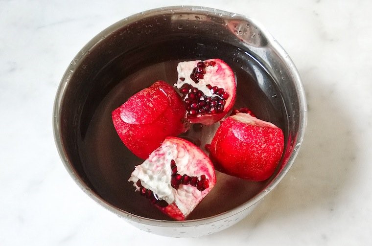 With the seeds, I could make a dark tangy syrup referred to as Pomegranate Molasses to be used as a meat glaze, in salad dressings, or in stews. I could also mix them into green, couscous, or quinoa salads. Or, if I had enough I could blend them into juice. Now that I knew the what, I just needed to know the how.