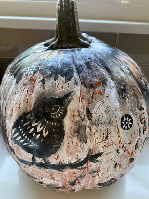 So, what does any of this have to do with my sleepless October nights? For as long as I can remember, I’ve taken the time to carefully consider how to customize my pumpkins for Halloween. Decades of carving squashes with whimsical and friendly faces, has left me, how shall I say it, a little…bored. But, once I put down my knife, and I picked up my art supplies, a whole new world of delightful decorating designs opened up to me!